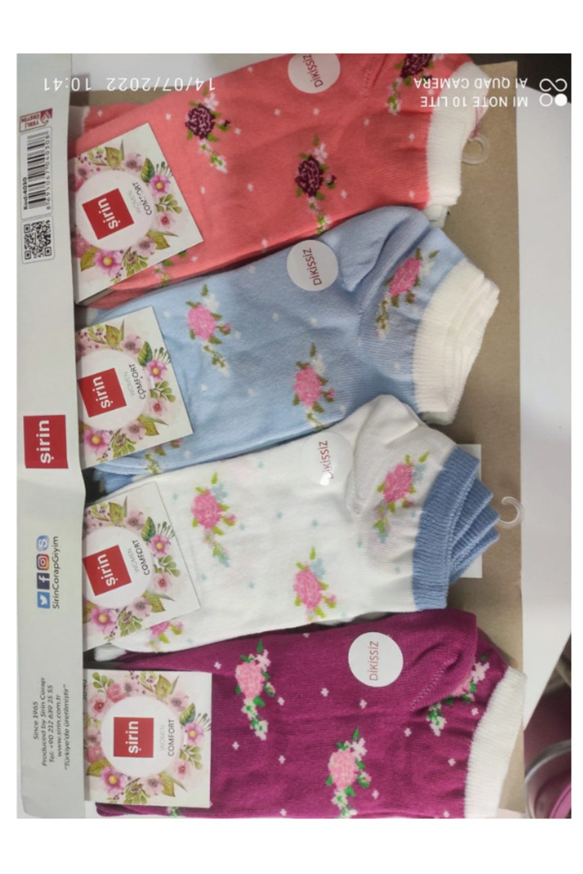 12 li çiçek desenli dikişsiz bayan çorabı mor, beyaz, mavi, pembe