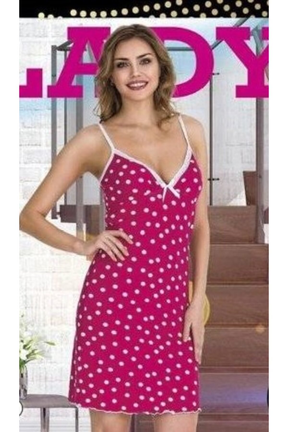 Kadın Gecelik ,pembe Renkli, Puantiyeli